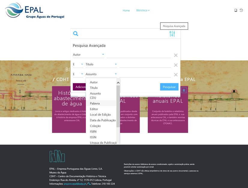 bibliotecas, antes de realizar a pesquisa, pode filtrar previamente pelo