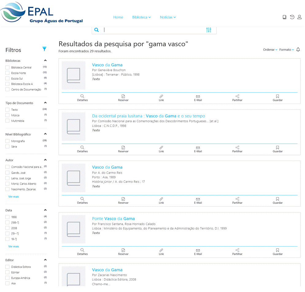 Exemplo de uma pesquisa: pesquisar pelos termos "Vasco da