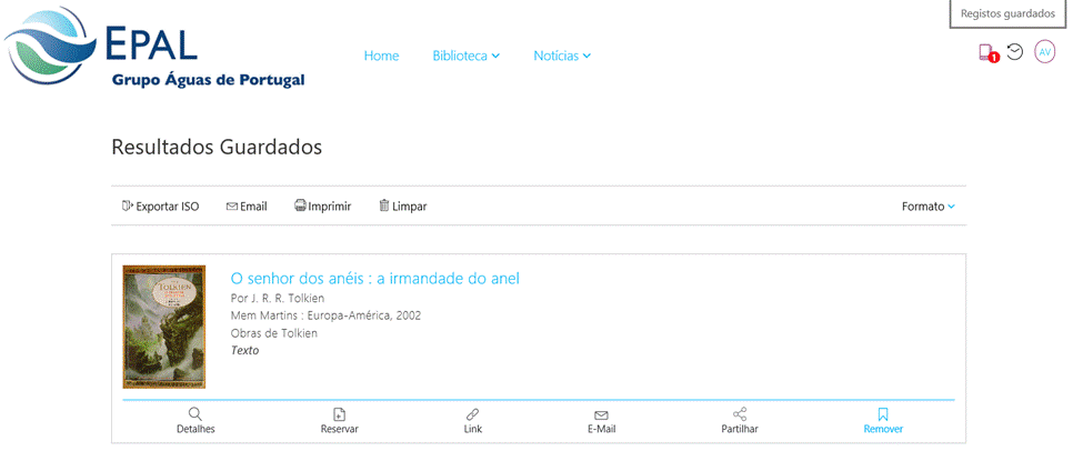 clicado no menu Registos Guardados, estão presentes todas as obras que